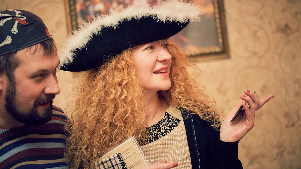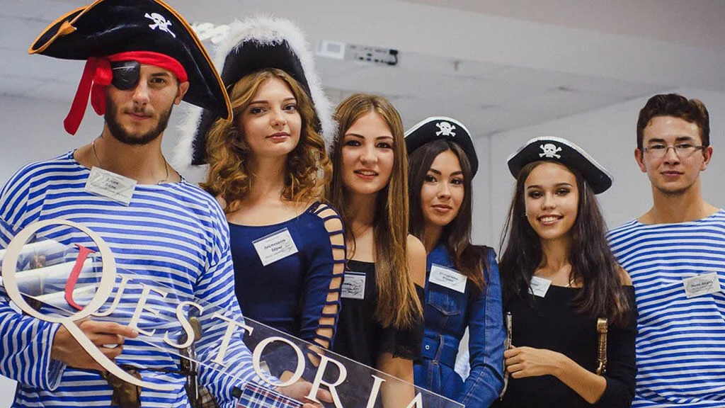 Квесторія — це гра не проти кімнати, а один з одним. Ви граєте у команді, але у кожного — своя мета. Ведучий проведе гру де завгодно і з будь-якого приводу — на день народження, корпоратив або просто так.