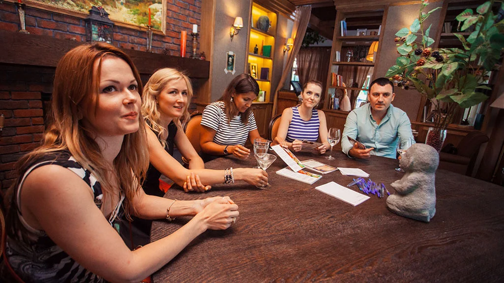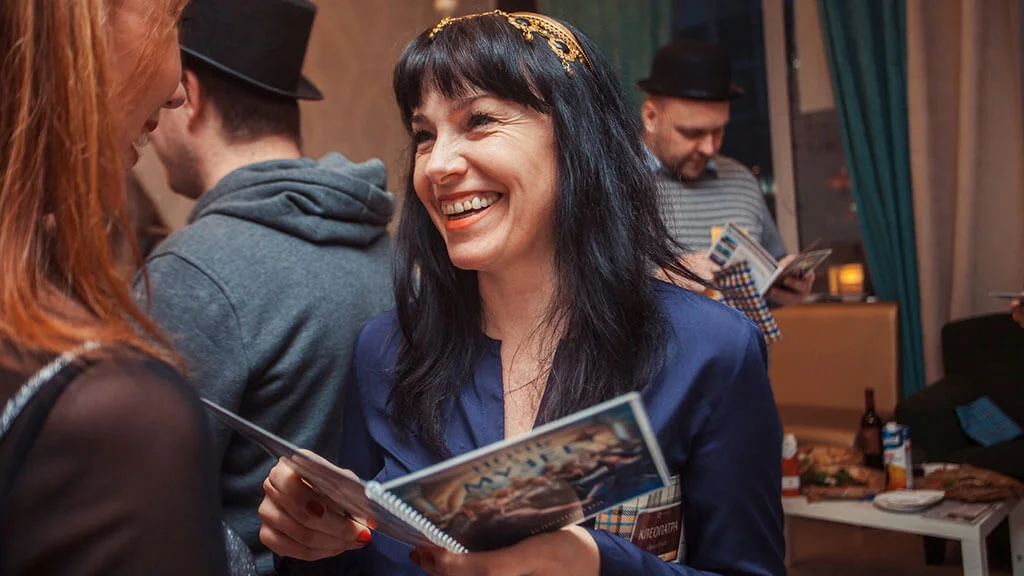 Квесторія — це гра не проти кімнати, а один з одним. Ви граєте у команді, але у кожного — своя мета. Ведучий проведе гру де завгодно і з будь-якого приводу — на день народження, корпоратив або просто так.